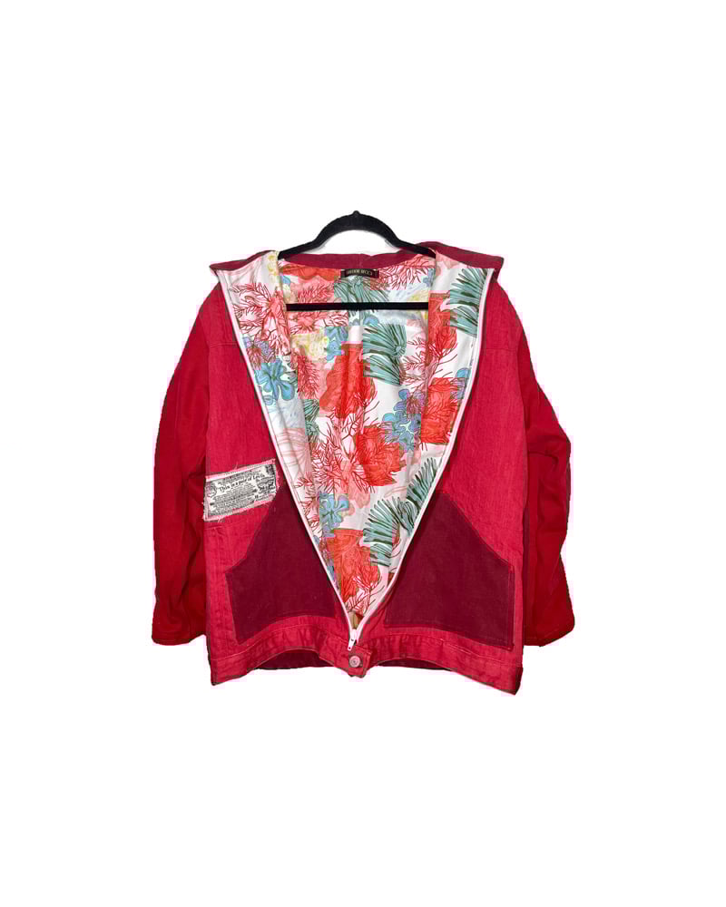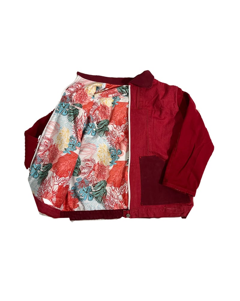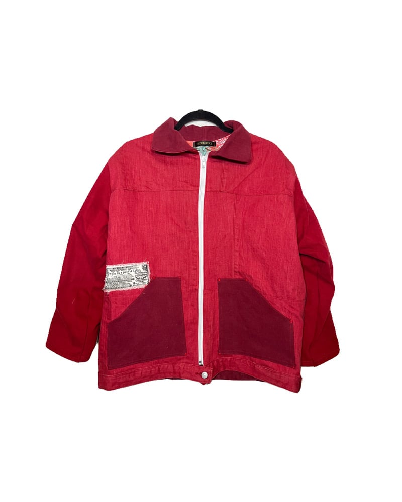 Red Patchwork Denim Jacket